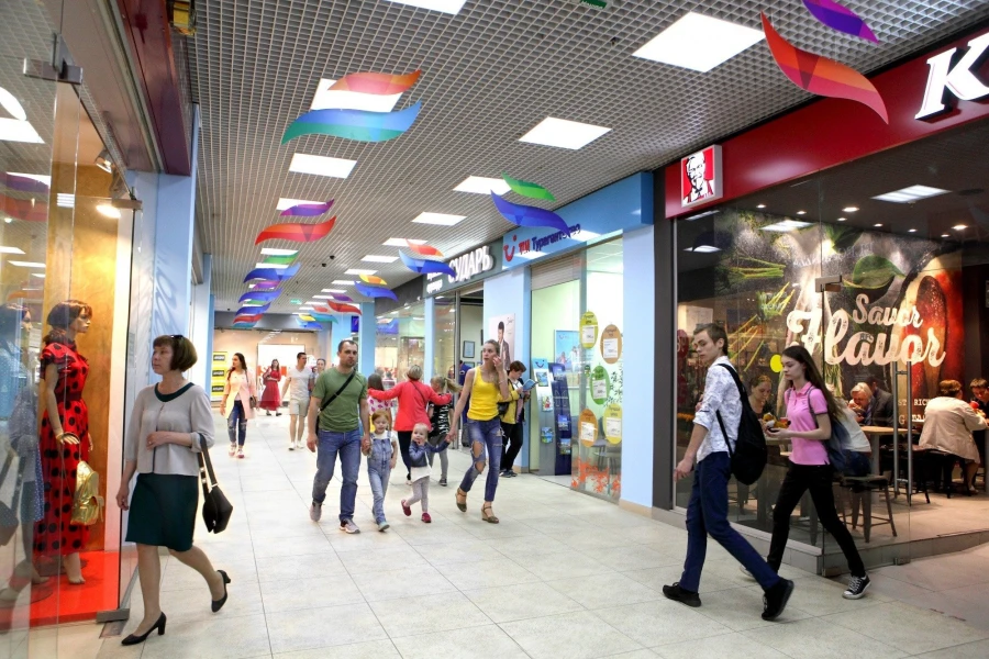 представлены популярные магазины, супермаркет, а также популярные рестораны быстрого
