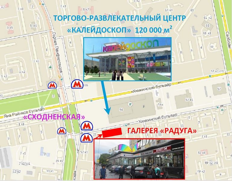 Современный торговый центр расположен около станции метро «Сходненская». Это комплекс районного масштаба, оборудованный современными инженерными системами обеспечения, лифтами и эскалаторами.