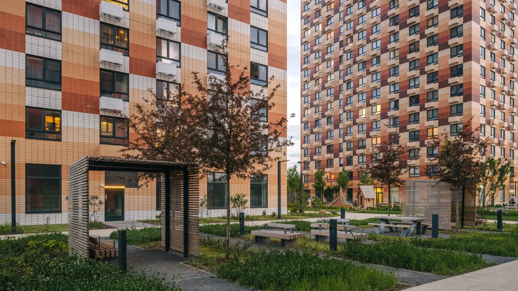 В жилой квартал входят одиннадцать корпусов, в которых есть квартиры и апартаменты. Переменная высота домов — от 11 до 24 этажей — создаёт ощущение простора и позволяет солнечному свету свободно проникать во дворы и комнаты. Фасады природных цветов украшены разными фактурными элементами, поэтому каждый дом выглядит по-особенному.