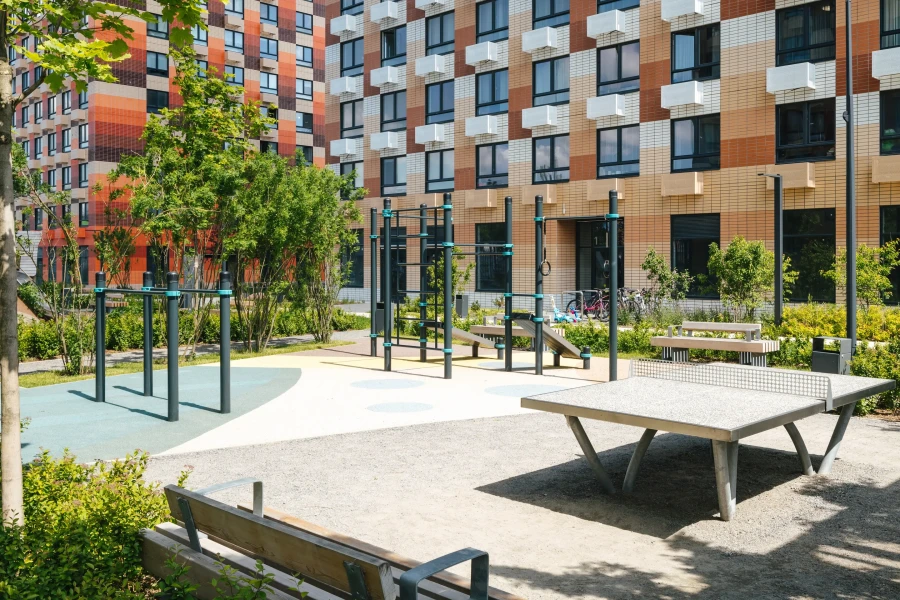 В зелёных дворах-парках оборудованы современные детские площадки и места для отдыха. Ещё в проекте есть Local Play — большое игровое пространство для детей, где будет интересно и малышам, и подросткам.