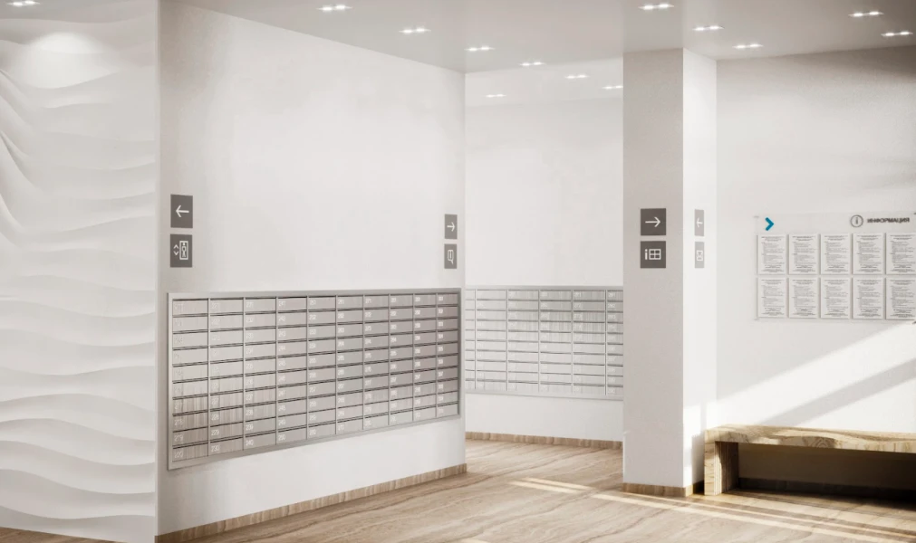 Больше естественного света и пространства будет в лобби — здесь панорамные окна. Это еще и безопасно: вы всегда видите, что происходит снаружи и во дворе. В лобби появятся мягкие диваны, фигурные панно, живые растения и настенные арт-объекты — пусть дом и уют начинаются здесь.