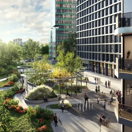 Новый комплекс включает 4 секции переменной высоты (24-29 этажей), подземный паркинг, рассчитанный на 670 машиномест и еще 11 гостевых мест. Фасад объекта с увеличенной поверхностью остекления отделан разноцветным металлом.