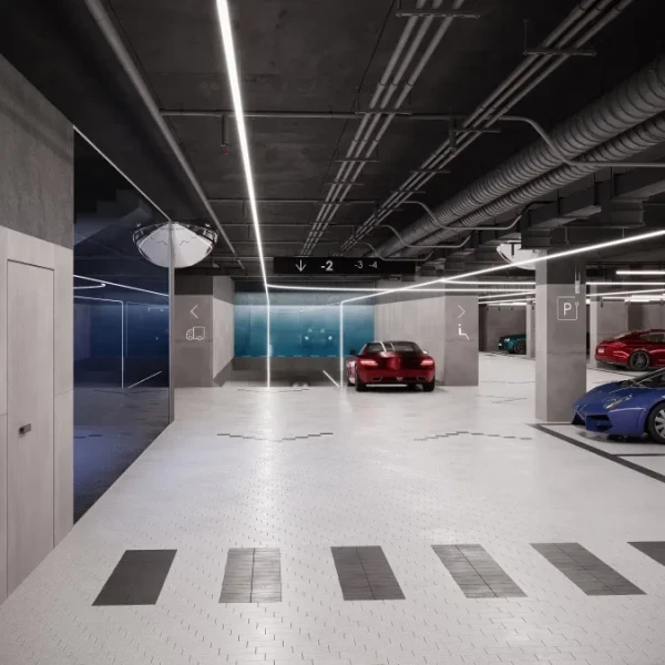 На территории многофункционального комплекса RED 7 предусмотрен подземный паркинг на 284 автомобиля. Интерьеры общих пространств разрабатывались голландской студией Sabine Marcelis. Комплекс также будет включать зоны отдыха, рабочие пространства, сервисы, торговые площади, клубную зону с кинотеатром, сигарную, коворкинг, спортивную площадку, лаунж-зон и открытую террасу, а также рестораны, кафе, офисы, фитнес-клуб с бассейном, супермаркет и многое другое.