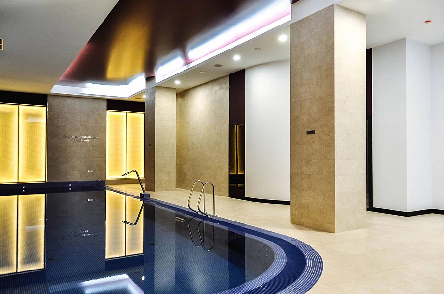 Богатая внутренняя инфраструктура комплекса дает собственникам жилья возможность отдохнуть, не уезжая далеко от дома. На первом этаже размещены фитнес-клуб с собственным бассейном, SPA, зоны ожидания и ресторан с винным баром.